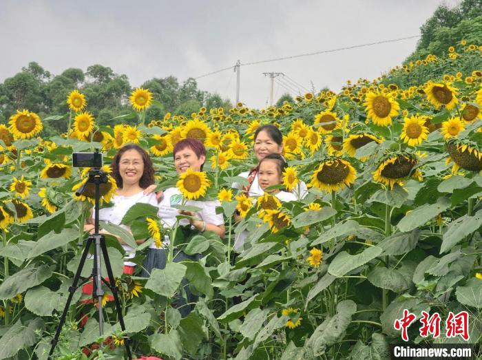 图为游客在油葵花海“打卡”。荣县融媒体中心供图