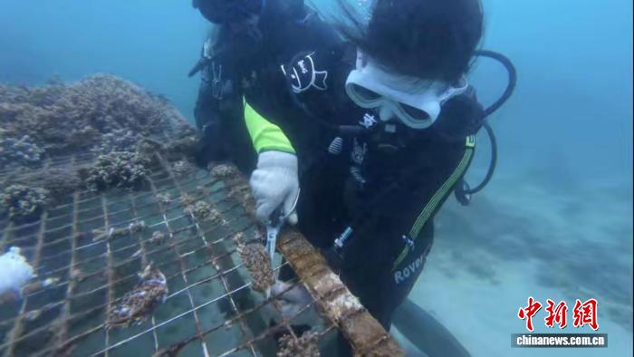 修复不止于规模,更重在创新。蜈支洲岛旅游区海洋部工作人员巴金龙介绍,团队探索出火山石支架修复、绳子式珊瑚苗圃等一系列新技术。例如,火山石支架可将珊瑚抬升至距海底60公分以上,有效避免沙石掩埋淤积;“绳子式珊瑚苗圃”则通过悬浮方式,提升珊瑚覆盖效率。