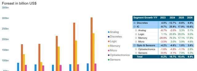 根据世界半导体贸易组织(WSTS)的数据,上半年全球半导体市场规模达到3460亿美元,同比增长18.9%。逻辑、存储、传感器等细分领域全面回暖,但分立器件和光电器件略有下滑。在中国,不少芯片企业在算力与端侧AI芯片领域表现出色。