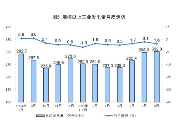 国家统计局:8月份规上工业发电量9363亿千瓦时 同比增长1.6%