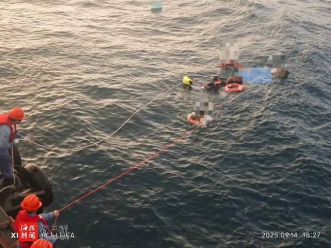 渔船翻扣7人落水 海上搜救迅速救援 多方合力成功救助!9月14日17时27分,洋浦海上搜救分中心接到报警,称一艘渔船在洋浦港港外2号锚地发生翻扣,船上7名人员落水,请求协调力量救助。