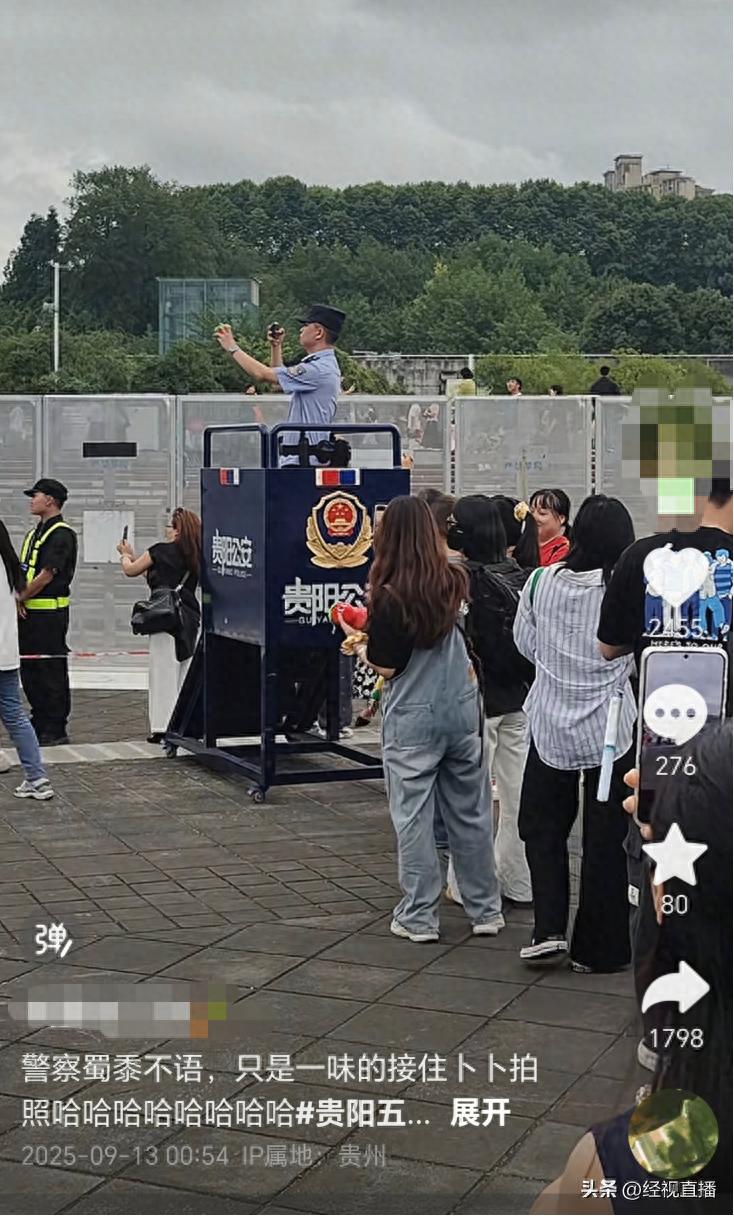 9月12日晚,五月天“回到那一天”25周年巡回演唱会贵阳站首场开唱。进场前,有网友发现,场外贵阳公安值班点前有不少粉丝排队等待民警代拍打卡。