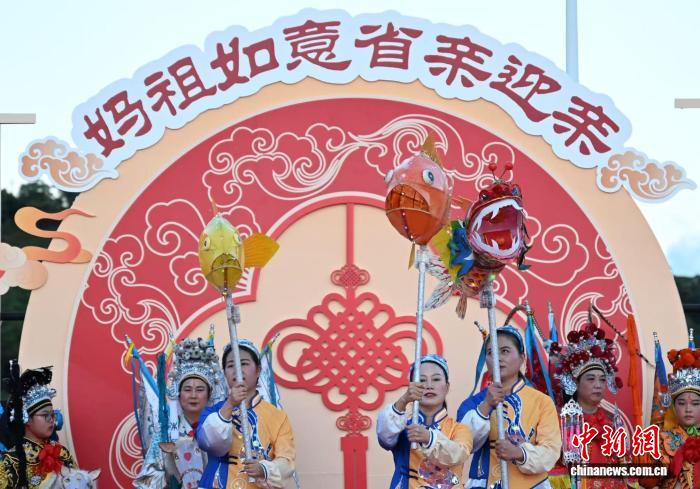 中新社宁波9月15日电 (张斌)妈祖如意省亲迎亲活动15日在浙江省宁波市象山县石浦镇东门渔村举行,吸引两岸同胞参与。