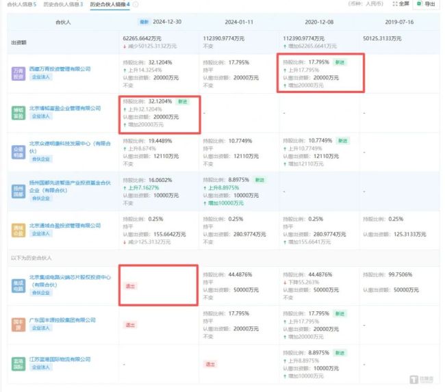 重要的转折点出现在2024年底。通州国资委背景的通州房地产将其持有的通域合盈40%股权转让给了西藏万青。几乎同时,通州国资委背景的北京集成电路尖端芯片基金退出了其在通域基金的份额。黄涛则通过其关联公司博韬富盈(深圳)投资合伙企业(有限合伙)(以下简称“博韬富盈”)追加认购了2亿元的通域基金份额。
