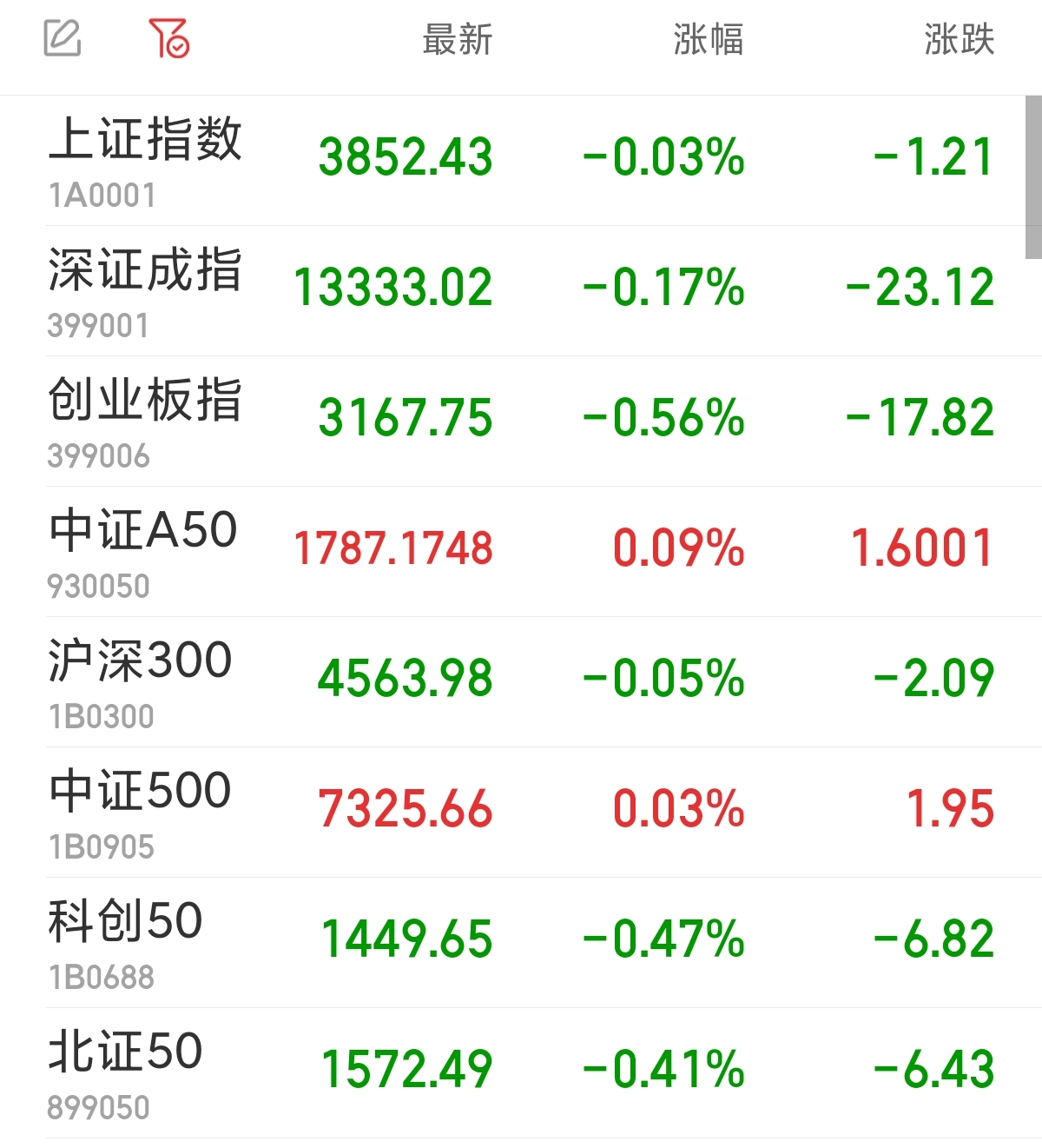 中新经纬9月25日电 周四,A股三大指数集体低开。上证指数跌0.03%,报3852.43点;深证成指跌0.17%,报13333.02点;创业板指跌0.56%,报3167.75点。