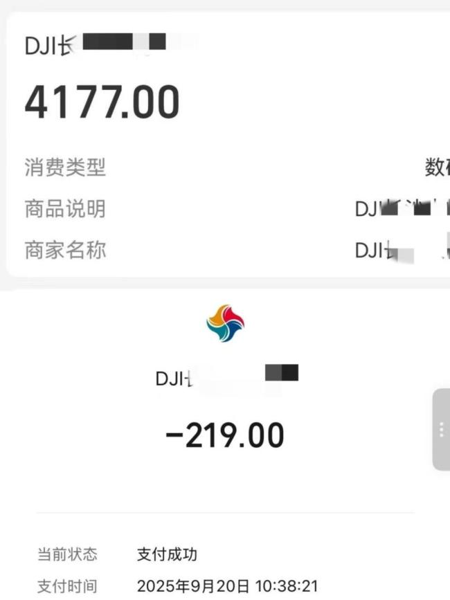 有消费者反映,在线上和线下购买时,大疆对于降价的处理方式不同,部分消费者因此面临退货退款难的问题。长沙消费者小美在9月20日购买了一台大疆Pocket 3,对比前后差价约700元。看到降价消息后,她心情低落。小美表示,她在长沙一家大疆门店购买了Pocket 3基础版,花费4177元,还买了219元一年的随心换服务。当时店员表示没有优惠政策。国庆期间,她在社交媒体上得知大疆多款产品将降价,随后联系了购买机器的店铺,但因已超过7天保价期,无法享受保价服务。