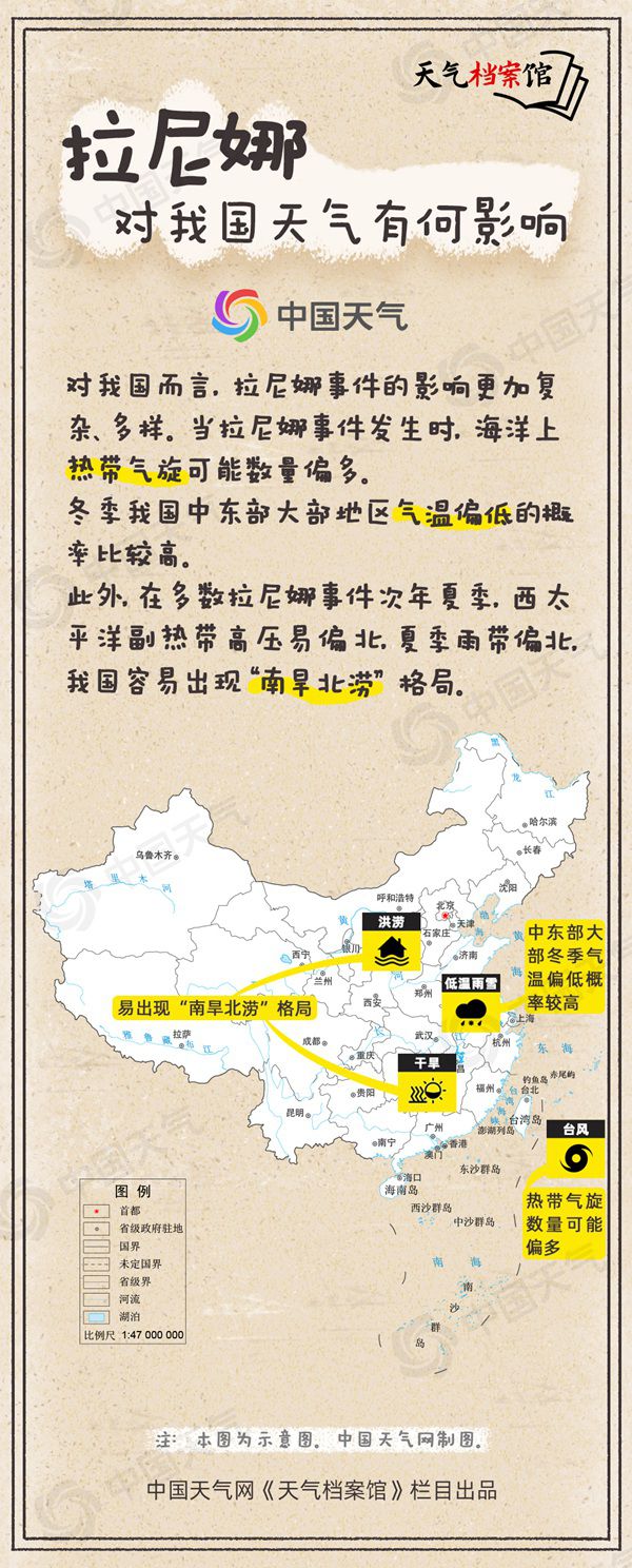 对于我国而言,在多数拉尼娜出没的次年夏季,西太平洋副热带高压位置易偏北,夏季雨带偏北,更容易出现“南旱北涝”格局。更多时候,拉尼娜总是跟“冷冬”、“极端寒冬”、“超级寒潮”、“XX年来最冷冬天”等关键词绑定在一起。