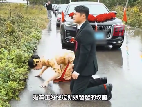 新娘出嫁路过已逝父亲坟前冒雨跪拜 摄影师:此情此景太触动人了