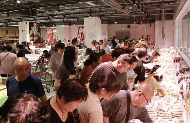 京东折扣超市数据显示,活动期间猪肉整体销量较活动前环比增长超200%,其中五花肉、后腿、前尖肉等部位销量环比增幅均超600%。消费者采购热情持续高涨,多个时段出现供不应求的情况。据统计,单日累计接待客流超2万人次,场面火爆程度远超预期。