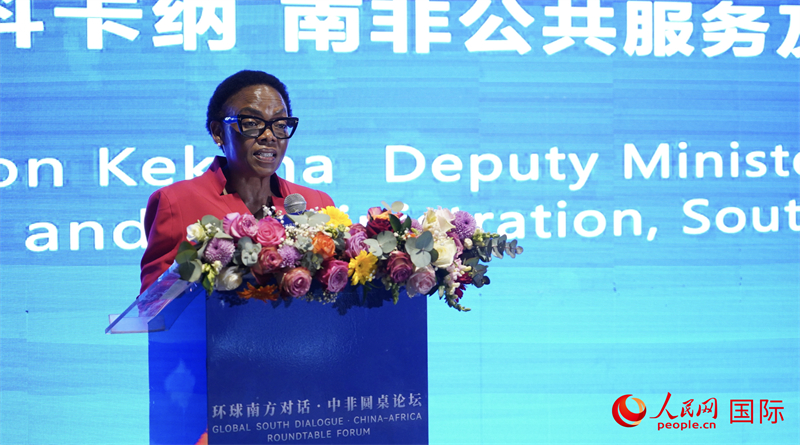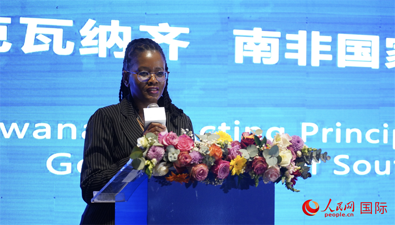 南非公共服务及管理部副部长平基·莎伦·科卡纳发表主旨发言。 人民网 刘畅摄