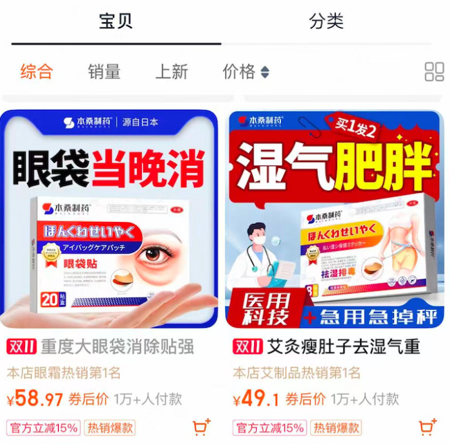 尽管本桑制药京东旗舰店随后发布声明,称已开展页面自查,整改“违规用语”,并强调“不接受且不妥协以任何形式的极限词赔付”,但中华网财经注意到,截至发稿,其淘宝旗舰店中“眼袋当晚消”、“保底少18斤”、“一滴去泪沟”、“当晚就消(眼袋、眼纹)”等宣传语依然醒目存在。