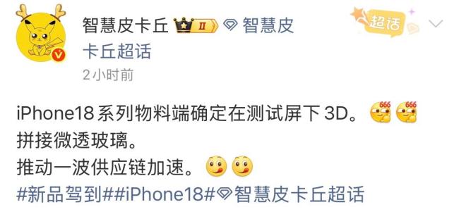 以上信息综合自网络爆料,具体参数以官方发布为准。配置信息可能存在迭代或误差,理性看待爆料内容。相关内容与截图源于知名博主或官方信息,引用仅用于数码交流使用,如侵权请及时告知删除。iPhone18系列确认测试屏下FaceID 物料与设计创新引关注!