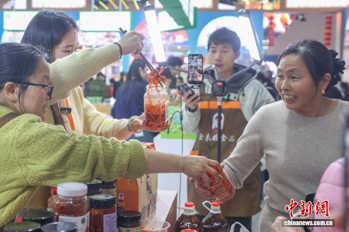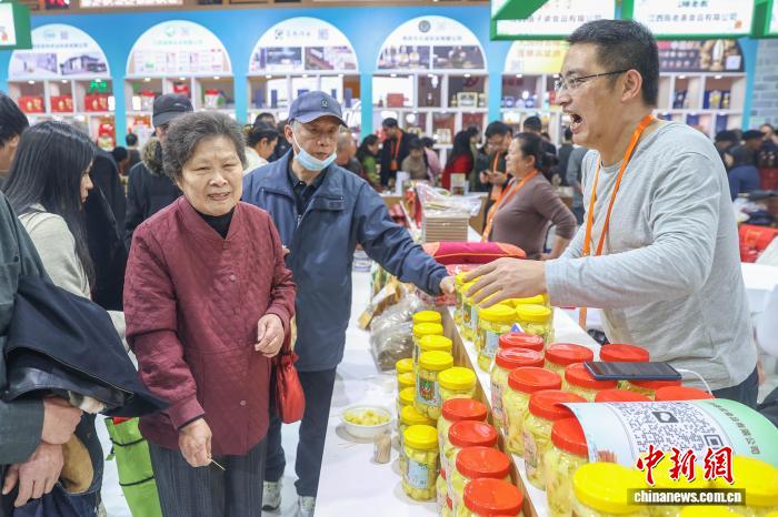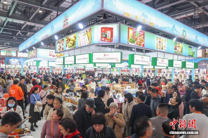 图为第七届江西农博会现场,春节临近,民众在采购各类年货农产品。中新社记者 刘力鑫 摄