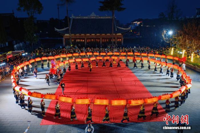 四川成都:119米长板凳龙城厢古城闹元宵