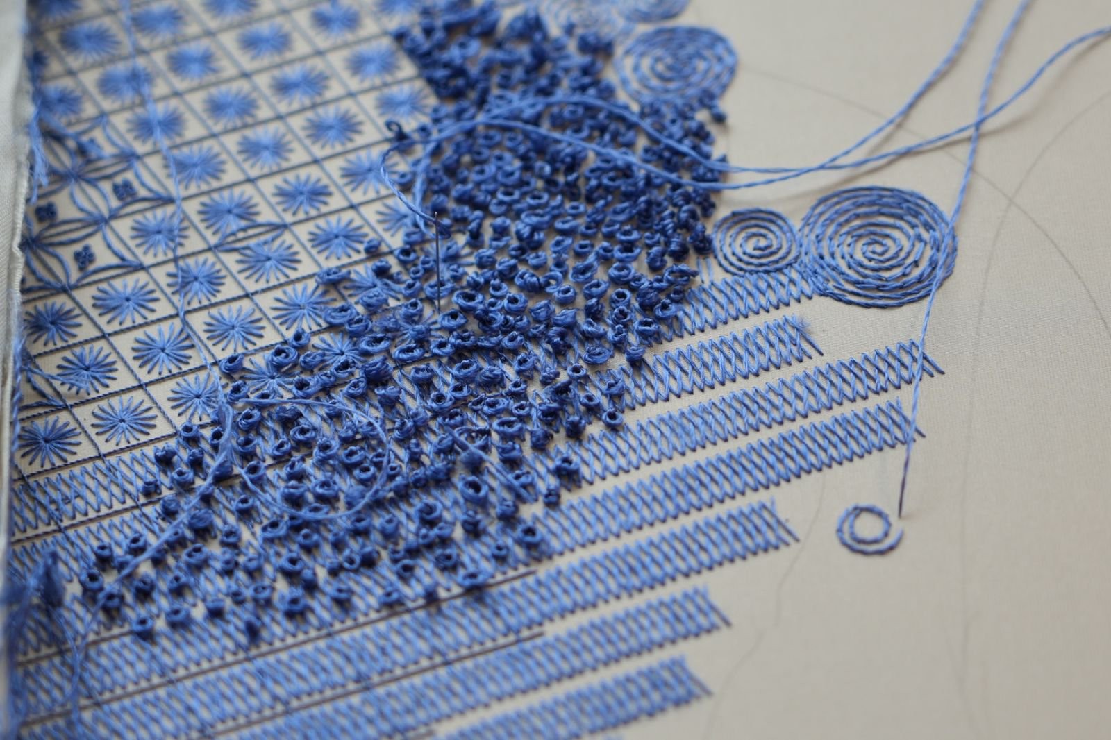 展览共呈现58件作品,分为三个彼此递进的板块,从手工艺的技法根基出发,逐步过渡至对针法语言的重组与延展,呈现刺绣从“技”到“艺”,再到“方法”层面的转化,体现针法逐渐走向自觉表达,也为传统工艺在今日语境中的展开提供新的视角。