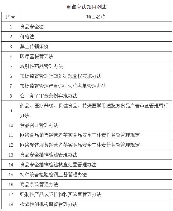 在严守重点领域安全底线,筑牢“三品一特”风险防线方面,推动制修订食品安全法、医疗器械管理法、放射性药品管理办法,制修订食品召回管理办法、食品安全抽样检验管理办法、食品安全抽样检验核查处置管理办法、特种设备检验检测监督管理办法等规章。