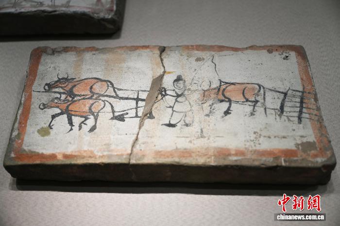 事实上,这些春耕图壁画砖不仅是一件件精美的艺术品,更是一部立体的历史教科书。孙丽娟说,画面中,农夫身着粗布衣物、神情专注,耕牛体态健壮、步伐沉稳,线条简练却极具生命力,既展现了古人对土地的敬畏、对劳动的热爱,也折射出魏晋时期河西地区相对安定、农业繁荣的社会风貌。