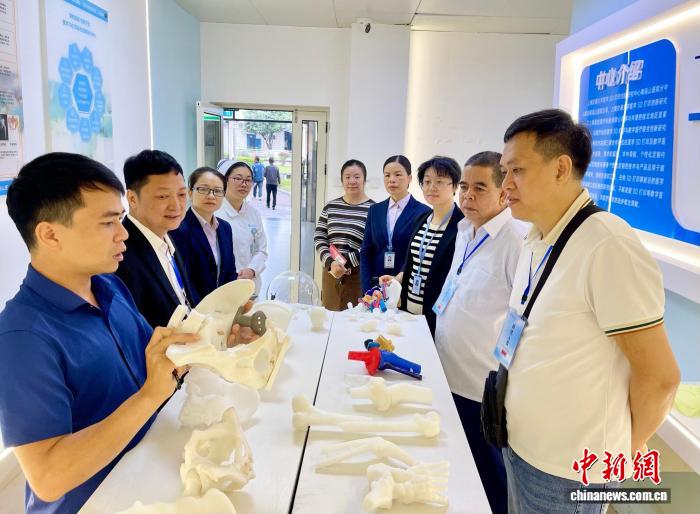 2024年11月5日,越南研修人员参观南溪山医院3D打印创新研究中心。广西壮族自治区南溪山医院供图