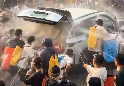 泼水节不能变味到人车狗都骚扰 文明庆祝需共识!近日,云南西双版纳泼水节期间,多起“不文明泼水”事件引起广泛关注。两名骑电动车的女子在道路中央被多人喷水围攻,其中一人连续摆手示意拒绝,但周围人群仍不断使用高压水枪喷射,另一人试图离开,也因同伴被困而折返,视频中的两名女子显得无助又无奈。另一起事件中,一辆车被拉开车门,多人向车内持续喷水,车主家属全身被淋湿,车内甚至出现冒烟情况。车主家属表示,后续将对车辆进行检测,如确认受损将报警处理。