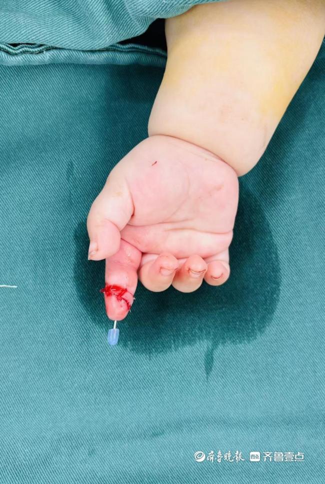 4月15日下午,在济南市第三人民医院手及上肢外科病房内,7个月大的芙芙正好奇地打量着周围,她的右手缠着厚厚的无菌纱布。11天前,这个刚萌出两颗乳牙的女婴经历了一场断指再植的极限救援——她的右手食指第一关节被剪刀完全剪断。