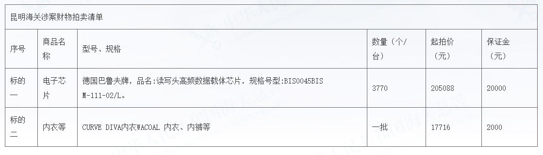 昆明海关所属昆明长水机场海关委托云南豪亨拍卖有限公司于2026年5月11日上午10时至5月12日上午10时止(网络拍卖设置延时出价功能,在竞价活动结束前,每最后5分钟如果有竞买人出价,就自动延时5分钟,自动延时的,截止时间以延长后的结束时间为准)在京东资产交易平台(网址:https://zcpm.jd.com/gov)对昆明长水机场海关涉案财物按现状进行公开拍卖,现将有关事项公告如下: