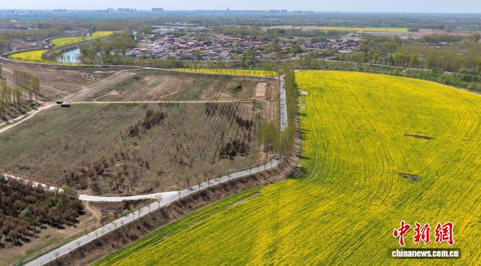 仲春时节,全国“十大最美农村路”——大运河堤顶路河北沧州段焕新姿。这条绿色“廊道”以盎然春意串联起生态美景、文化传承与民生幸福,成为市民游客踏青、健身、游览的好去处。图为4月7日,大运河堤顶路沧州南皮段