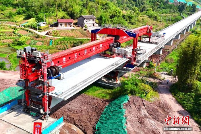 中新网成都4月17日电 (记者 刘忠俊)4月17日,随着最后一孔长32米、重约700吨的箱梁稳稳落在西安至重庆高铁(以下简称“西渝高铁”)双碉楼特大桥第18孔桥墩上,西渝高铁达州至广安段箱梁架设工作顺利完成,为下一步无砟