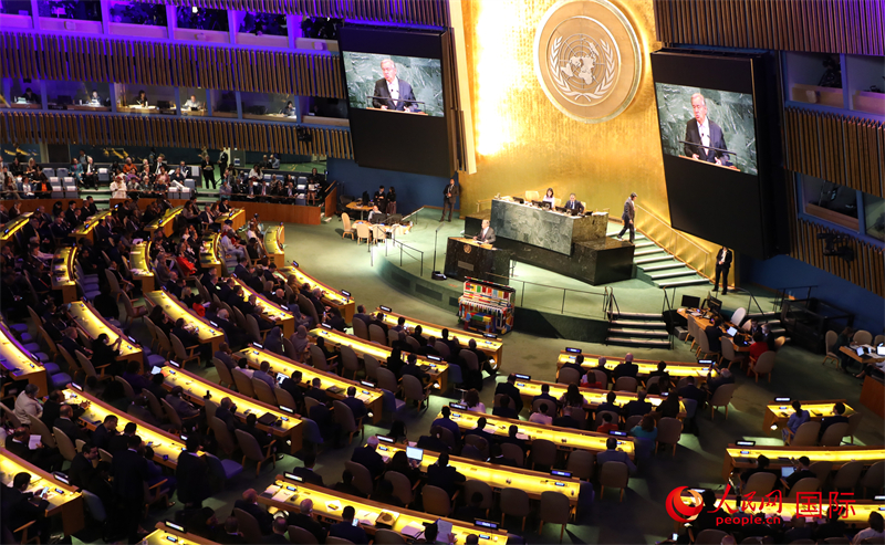 人民网联合国9月22日电(记者李志伟)当地时间9月22日,在联合国大会堂,联合国成立八十周年高级别纪念活动举行。联合国秘书长古特雷斯发表讲话,回顾联合国的历史使命,呼吁各国在全球危机加剧的当下,重燃八