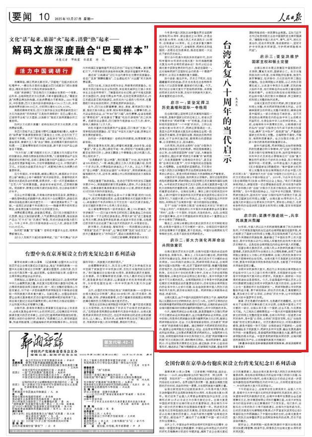 多家央媒就台湾前途命运密集发声 共促统一大业