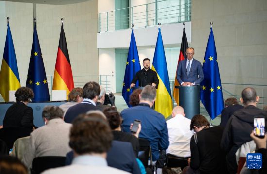 新华社柏林4月14日电(记者张毅荣李超)德国总理默茨14日表示,欧洲必须参与乌克兰和平进程及相关和平协议的达成。4月14日,德国总理默茨(后右)和乌克兰总统泽连斯基在位于柏林的德国总理府出席记者会。新