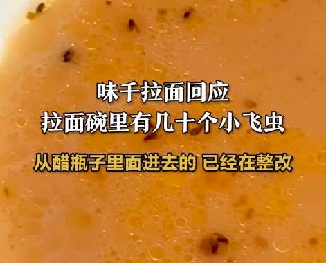 女子味千拉面吃出数十飞虫,店方称醋瓶未冷藏致虫害