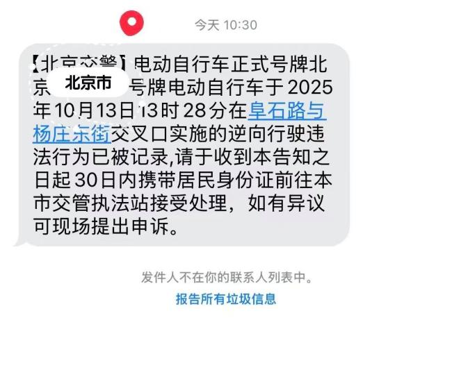近期,有市民因骑行电动自行车存在违法行为被“电子眼”精准抓拍,收到“北京交警”发送的违法告知短信,部分违法人还需到交管执法站接受处罚。今年年底前,北京全市主要路口的“电子警察”都将实现抓拍电动自行车违法行为