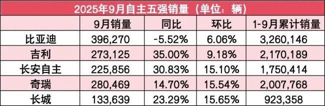 自主5强1-9月销量榜:三家年目标达成超65%,迪王意外下滑