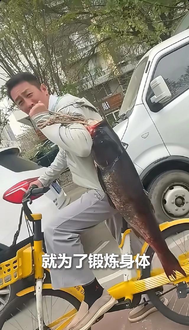 一位大哥在市区骑着共享单车,肩上扛着一条20斤2两的大青鱼,仿佛在进行夺冠游行。这场景让人联想到拿了大力神杯后徒步走回更衣室的张狂。在钓鱼圈这个极度内卷、空军才是常态的环境中,野钓到20斤2两的大青鱼简直不可思议