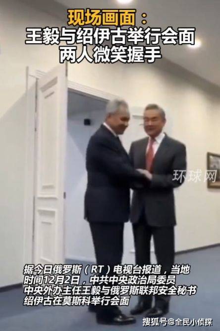 12月2日,中国外长王毅访问莫斯科,参加中俄战略安全磋商。俄方对王毅的到访非常重视,绍伊古亲自到会场门外迎接。两人见面后显得十分高兴,握手寒暄后共同前往合影区。在中日关系因台海问题而紧张的背景下,中俄会晤自然涉及台海和日本问题