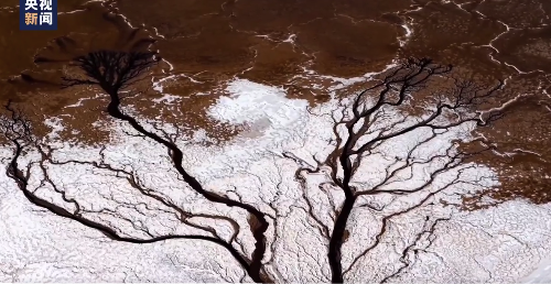 近日,内蒙古芒乃淖尔盐湖出现巨型“大地之树”景观。从空中俯瞰,树干与枝桠脉络分明,宛如大自然的写意画。...
