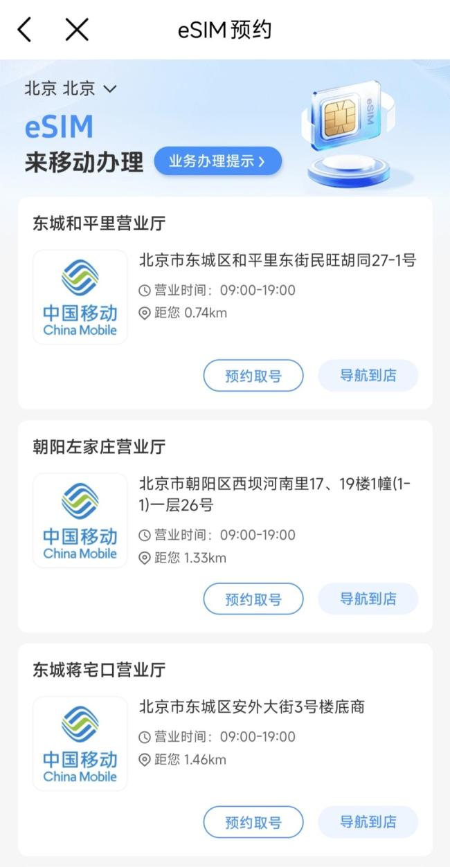 10月13日晚,中国移动官方公众号发布消息称,已获得开展eSIM手机运营服务商用试验的批复。用户可前往中国移动营业厅办理eSIM手机业务,并可通过中国移动APP查询办理网点信息